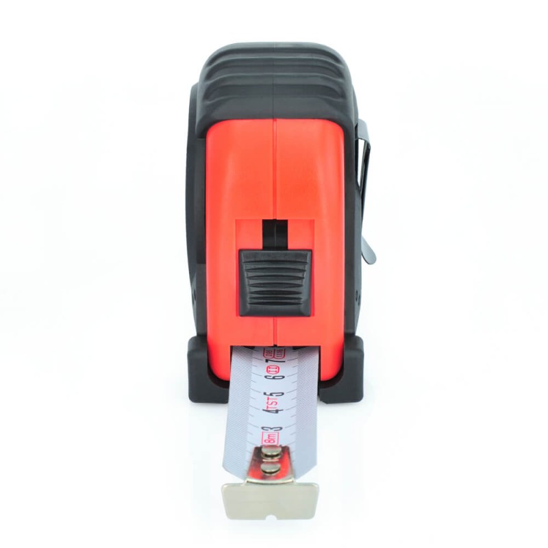 Professionelles Roll-Massband mit verstärktem Kunststoffgehäuse. Robust, aufschlagfest und dank bequemem Gummigriffüberzug sehr handlich.